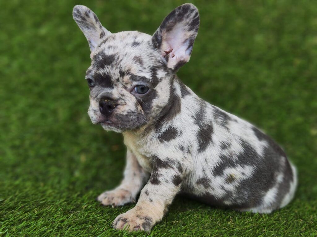 Merle: El patrón merle es muy raro en los bulldogs franceses y no es reconocido por muchos estándares oficiales de cría. Los perros con este patrón tienen una mezcla de colores más claros y oscuros que aparecen en parches.